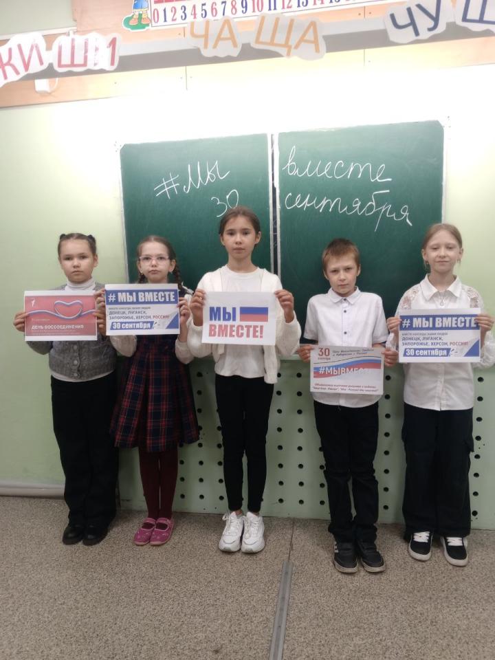 30 сентября в России отмечают День воссоединения Донецкой и Луганской народных республик, Запорожской и Херсонской областей с Российской Федерацией. Этот день отмечают с 2023 года. С тех пор он стал символом исторической справедливости и единства русского народа. В честь этой памятной даты в МОУ «Школа-коллегиум им. С.Е. Иванова» проведены классные часы, посвященные Дню воссоединения ДНР, ЛНР, Запорожской и Херсонской областей.